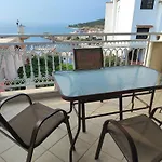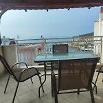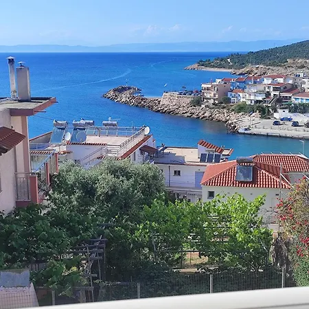 Daire, buzdolabı, fırın içeren donanımlı mini mutfak sunar. Deniz manzaraları terastan izlenebilir.